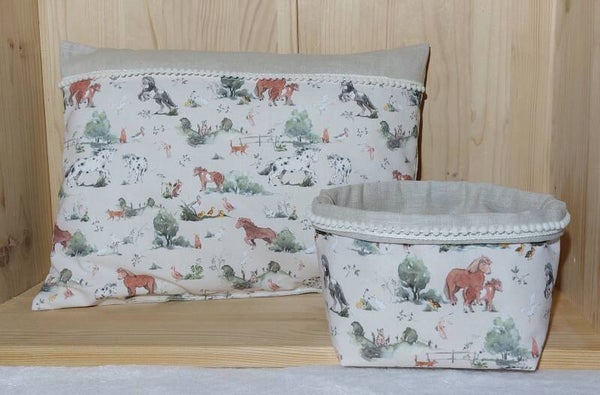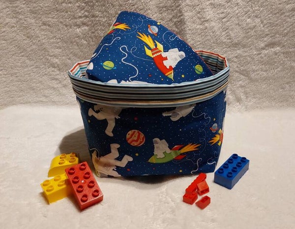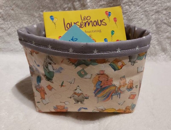 Der Innen- und Außenstoff ist aus 100 % Baumwolle, verstärkt mit Bügelvlies aus 100 % Polyester. Die Stoffkörbchen können vielseitig verwendet werden, z.B. als Dekoration, Aufbewahrung für Spielsachen, für den Wickeltisch oder einfach für "Dies und Das". Maße: - Klein -> Durchmesser ca. 20 cm und Höhe ca. 14 cm (mit Umschlag) - Groß -> Durchmesser ca. 27 cm und Höhe ca. 20 cm (mit Umschlag)