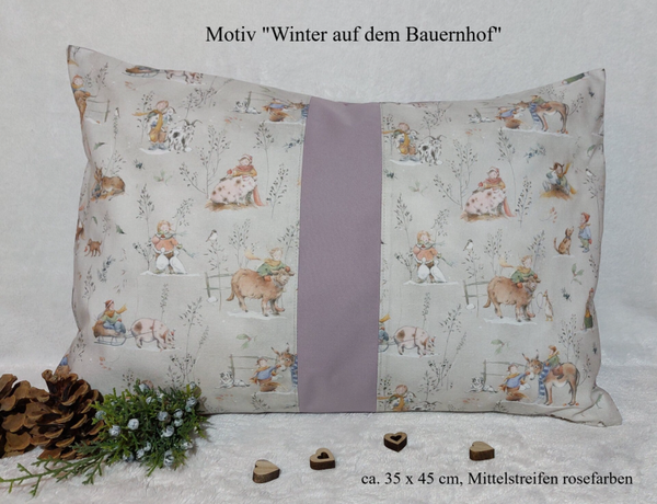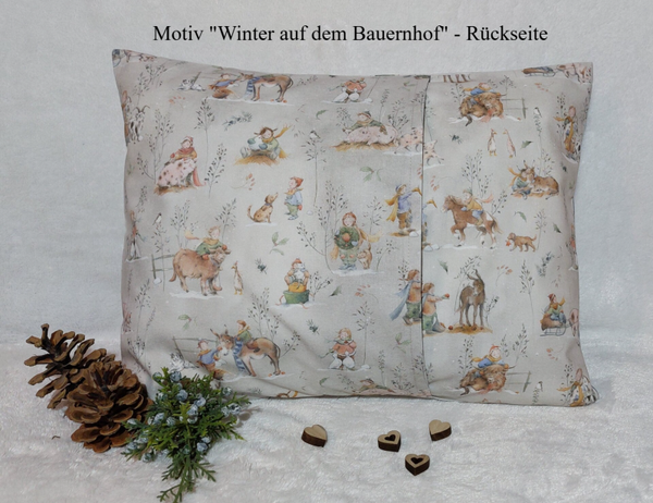 Kissen mit Motiv "Winter auf dem Bauernhof" (acufactum Stoffe) mit verschiedenen Verzierungen