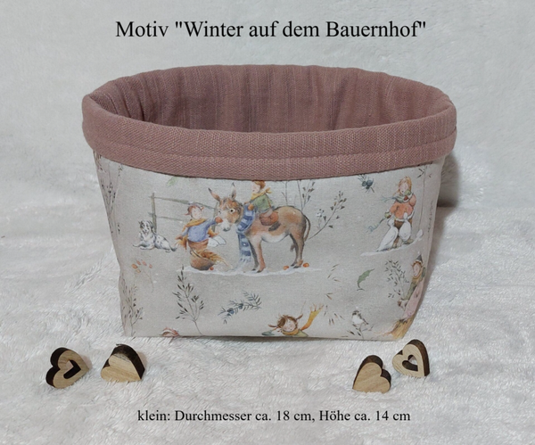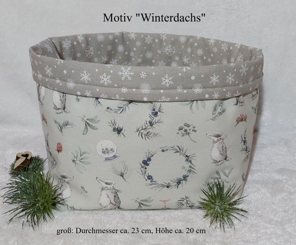 - Utensilos mit winterlichen/weihnachtlichen Motiven aus 100 % Baumwolle, verstärkt mit Bügelvlies aus 100 % Polyester. Die Stoffkörbchen können vielseitig verwendet werden, z.B. als Dekoration, Geschenkekörbchen oder für "Dies und das".